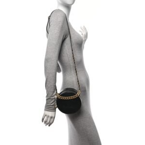 Glazed Calfskin Round As Earth Evening Bag Black
