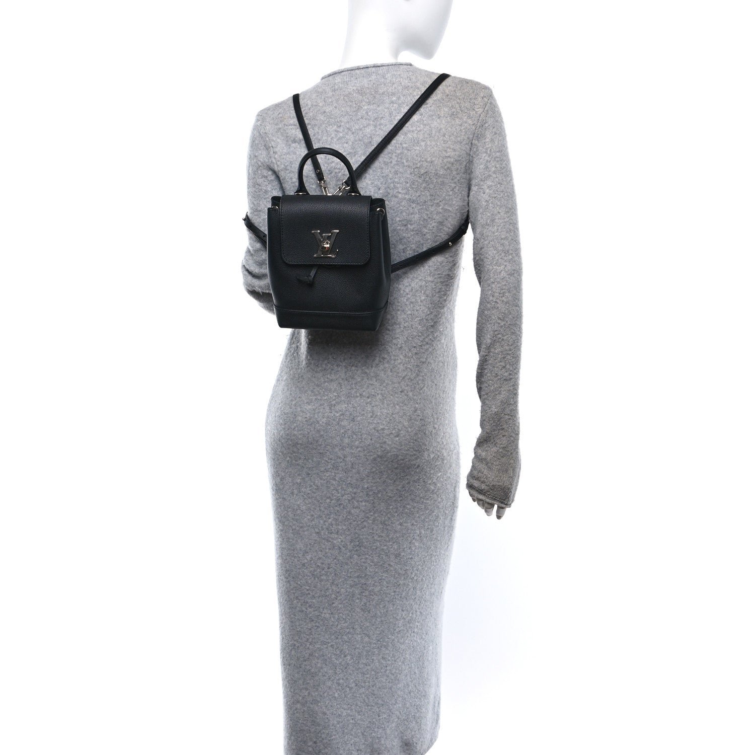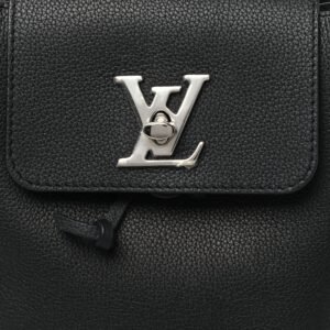 This is an authentic LOUIS VUITTON Calfskin Lockme Mini Backpack in Black.This backpackis crafted of black calfskin leather and silver hardware. This bag features a black top handle and adjustable black leather shoulder straps. The flap opens to a black microfiber interior with a patch pocket.