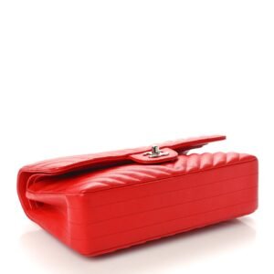 Caviar Chevron Quilted Medium Double Flap Red