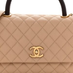 Caviar Lizard Embossed Quilted Small Coco Handle Flap Beige