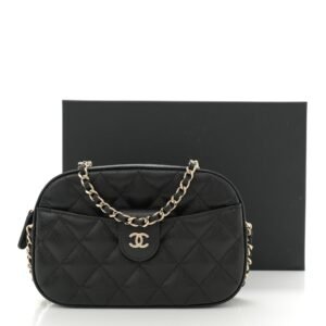 Caviar Quilted Chain Camera Bag Black