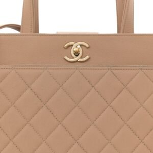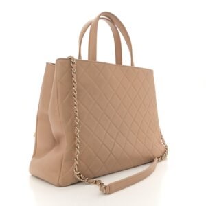 Caviar Quilted Large Business Affinity Shopping Bag Beige