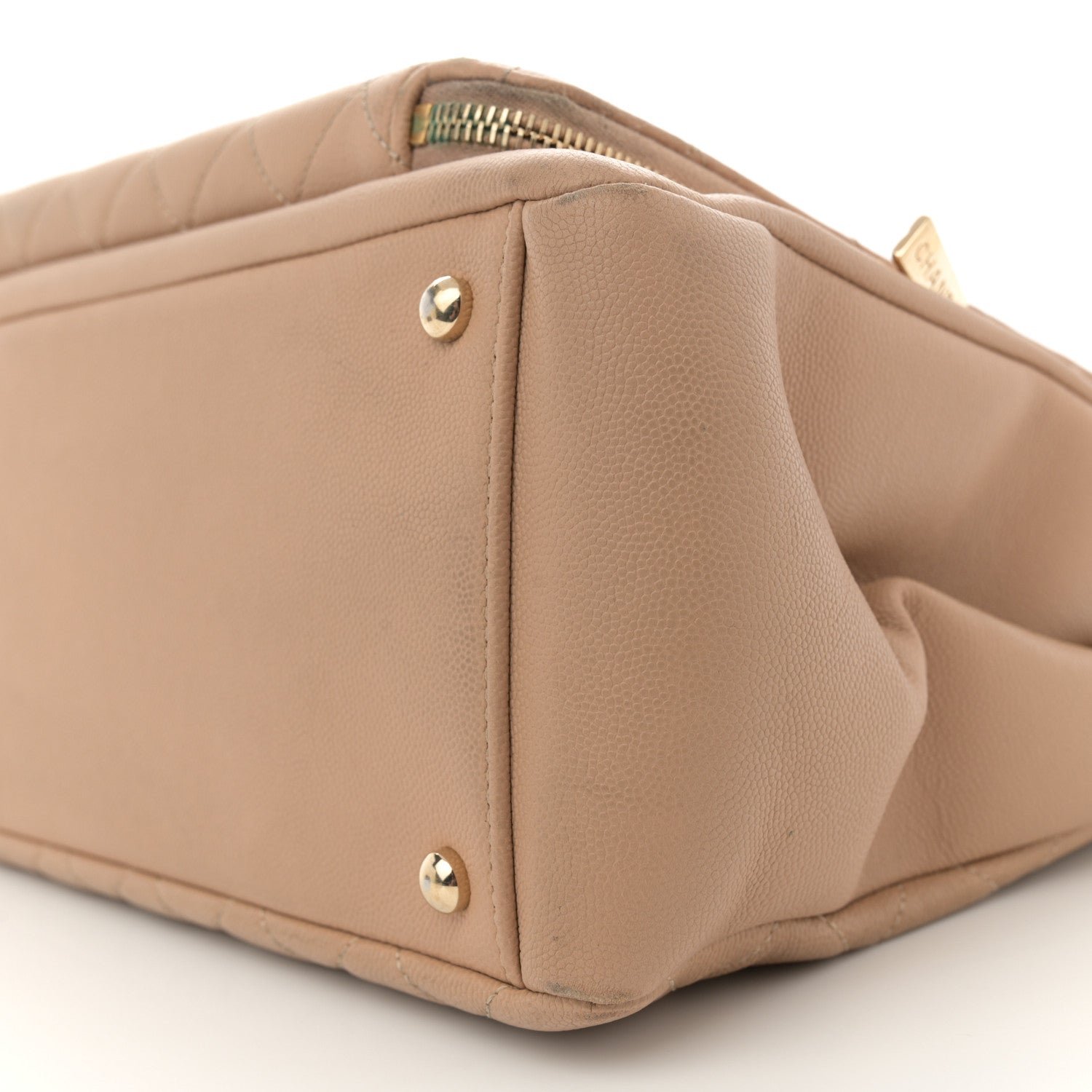 This is an authenticCHANEL Caviar Quilted Large Business Affinity Shopping Bag in Beige. This extra-large utility tote is beautifully crafted of caviar leather in beige. It features leather shoulder straps. expandable sides. a leather threaded gold chain link shoulder strap. and a gold Chanel CC turn lock. The bag has an open top and a spacious beige leather interior with zipper and patch pockets.