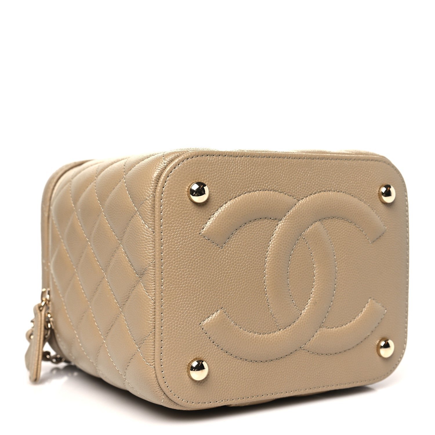 Caviar Quilted Small Top Handle Vanity Case With Chain Dark Beige