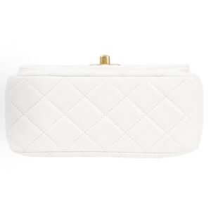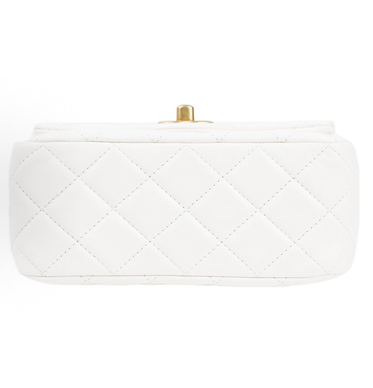 Chanel Mini Pearl Ball Flap Bag – White Quilted Leather, Gold Ball Chain