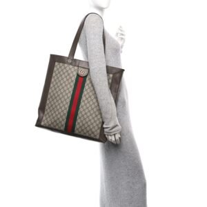 GG Supreme Monogram Web Large Ophidia Vertical Shopping Tote Brown