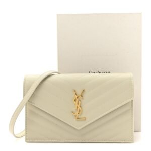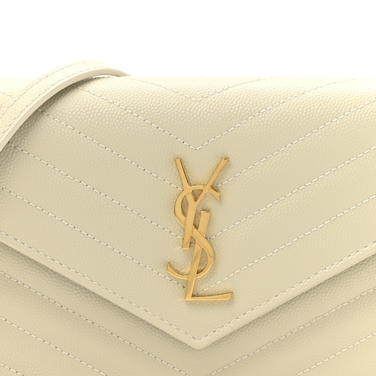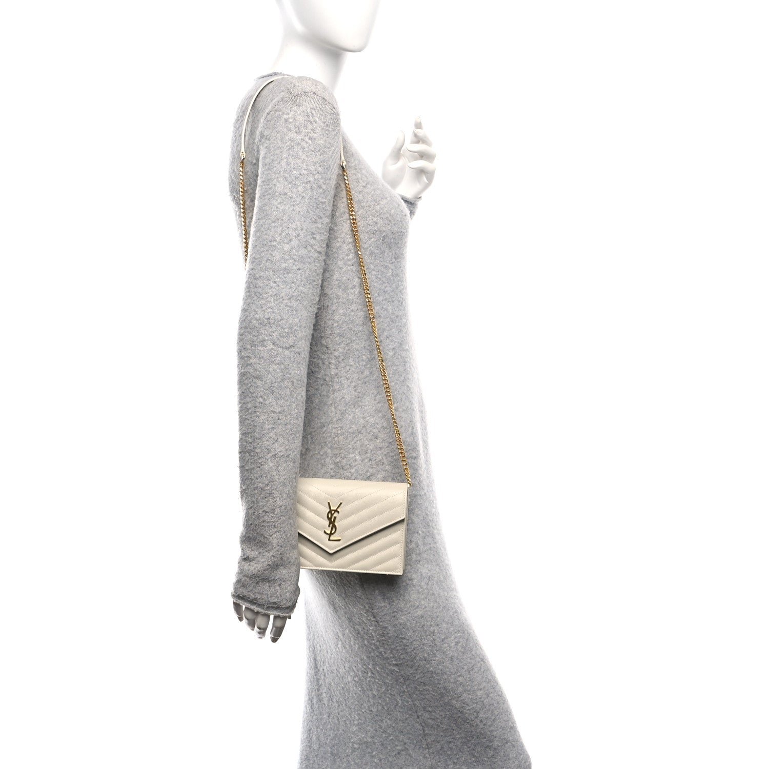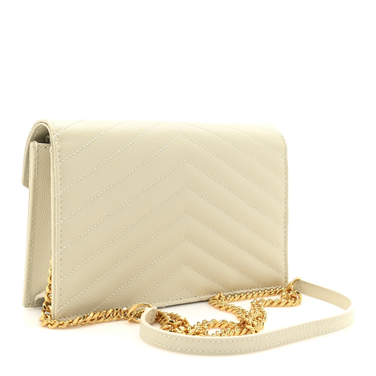 Grain De Poudre Matelasse Chevron Monogram Envelope Chain Wallet Crema Soft