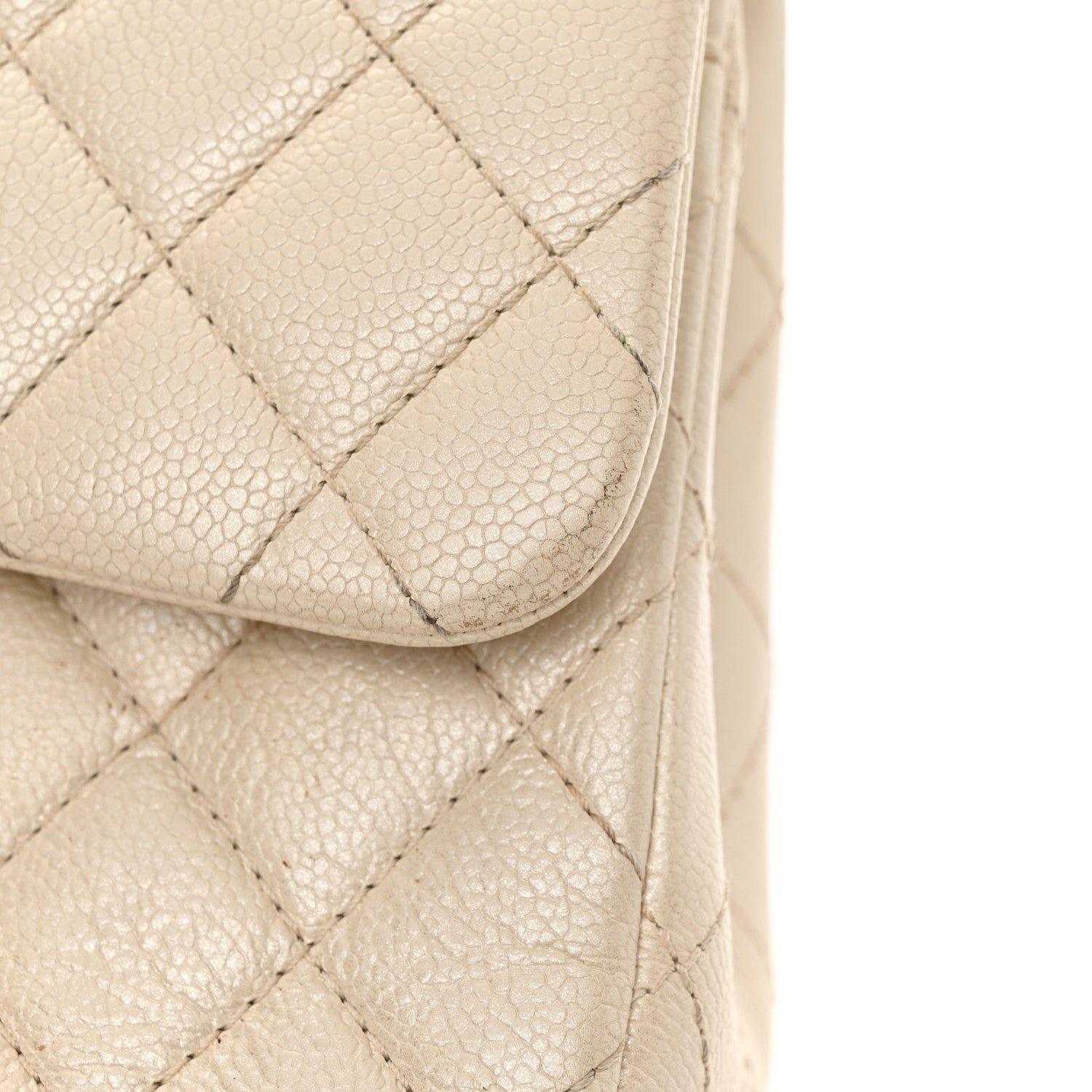 Iridescent Caviar Quilted Jumbo Double Flap Dark White