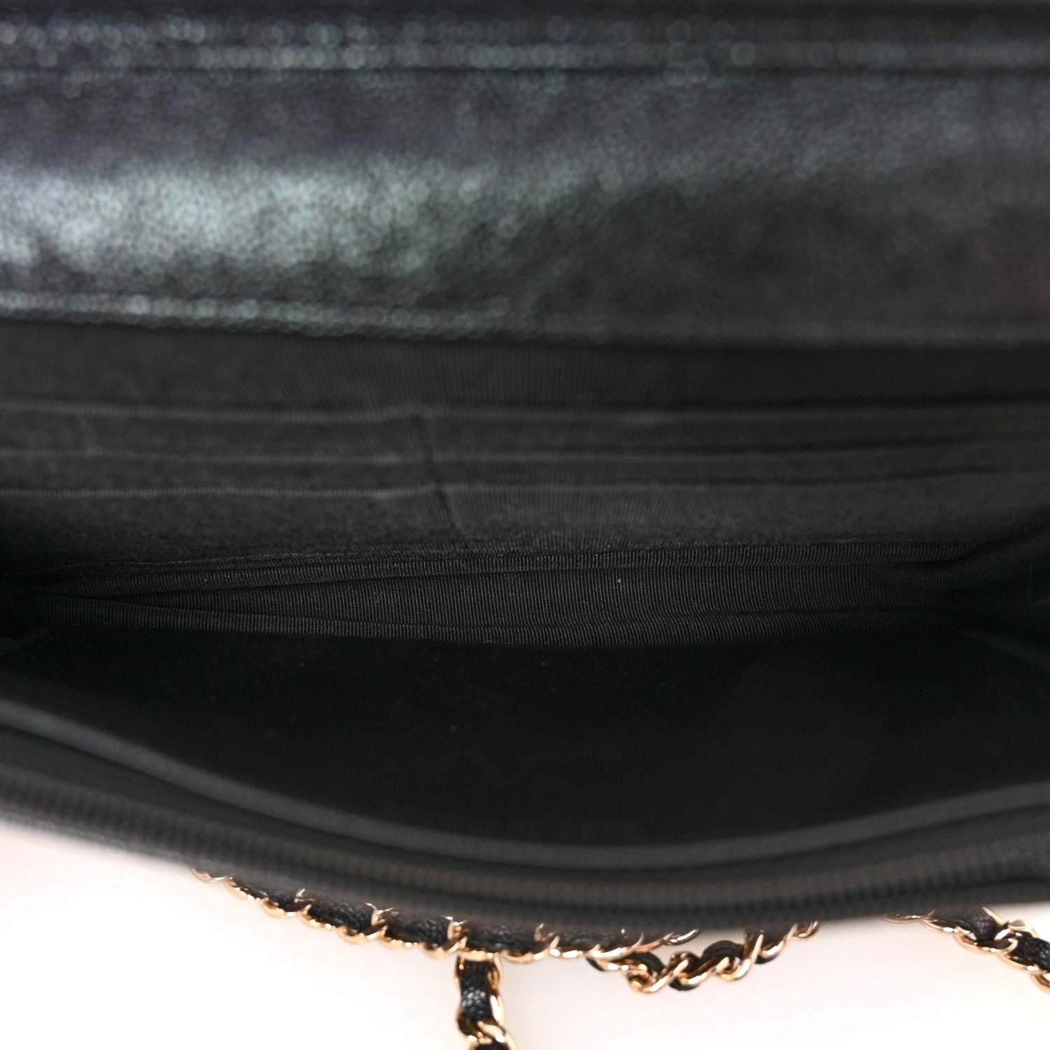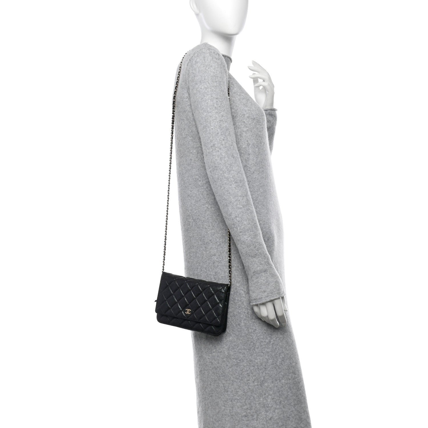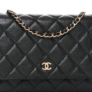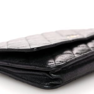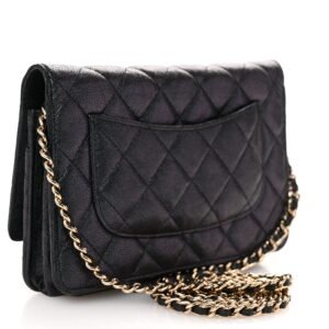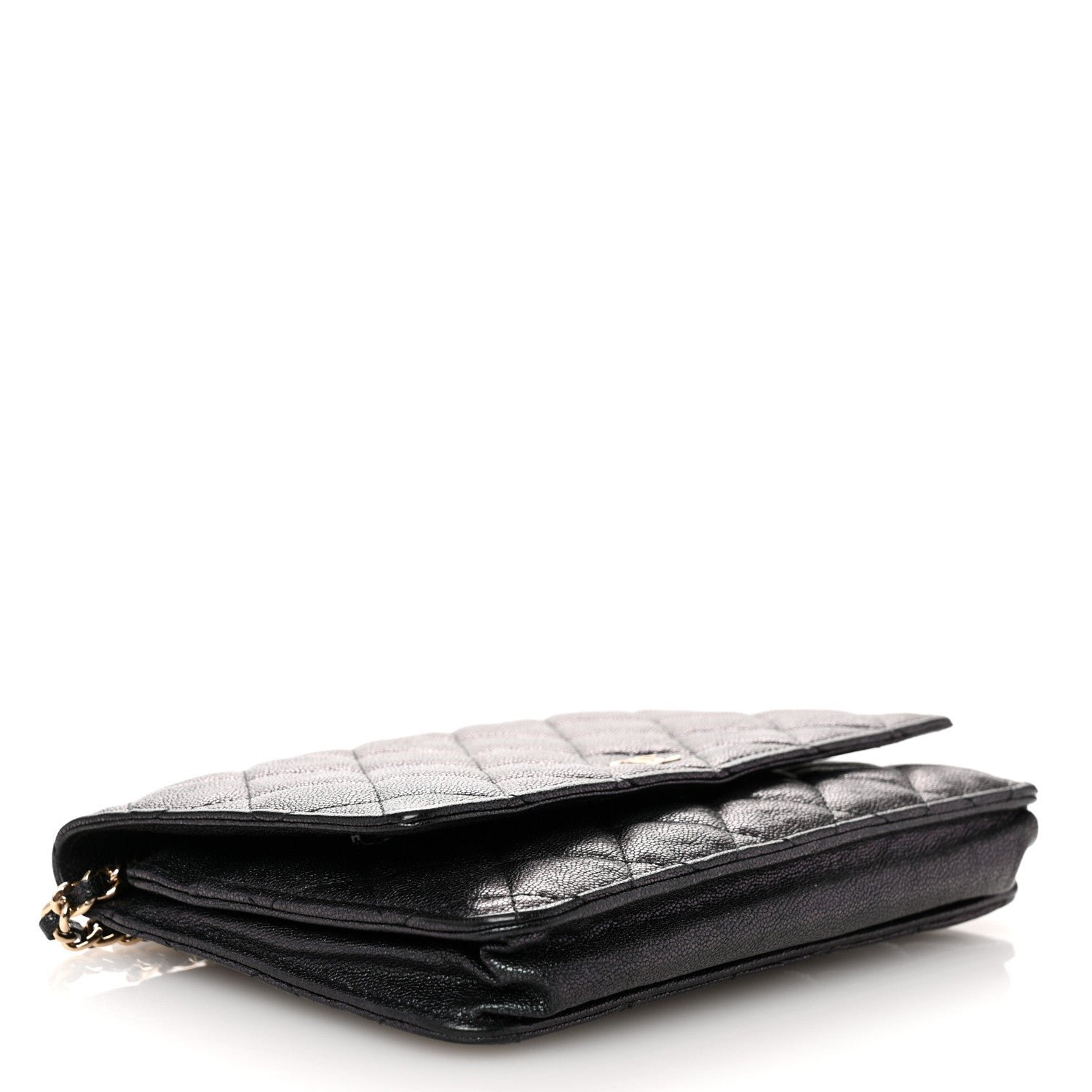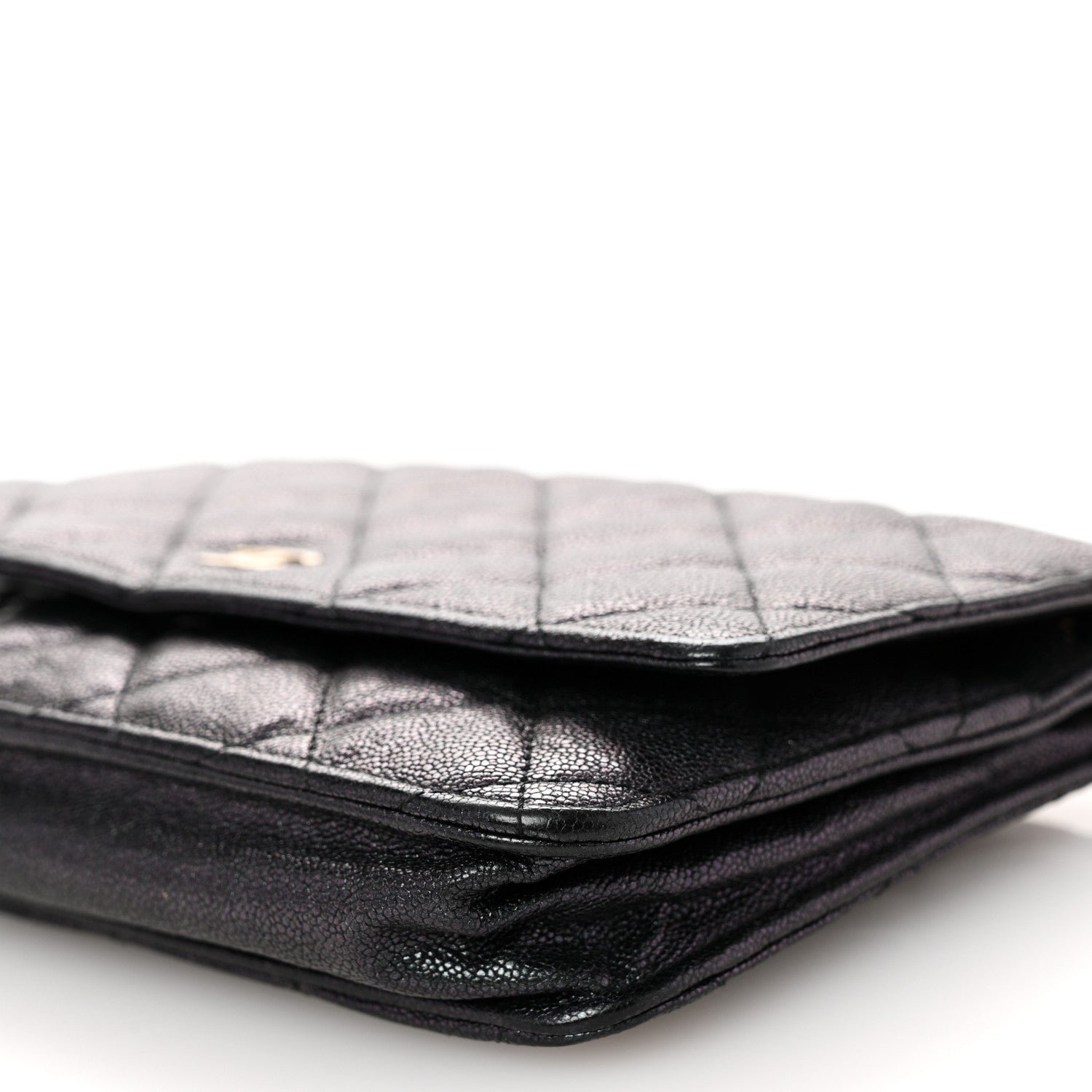 Iridescent Caviar Quilted Wallet on Chain WOC Black