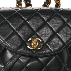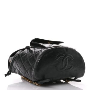 Lambskin Quilted Drawstring Backpack Black