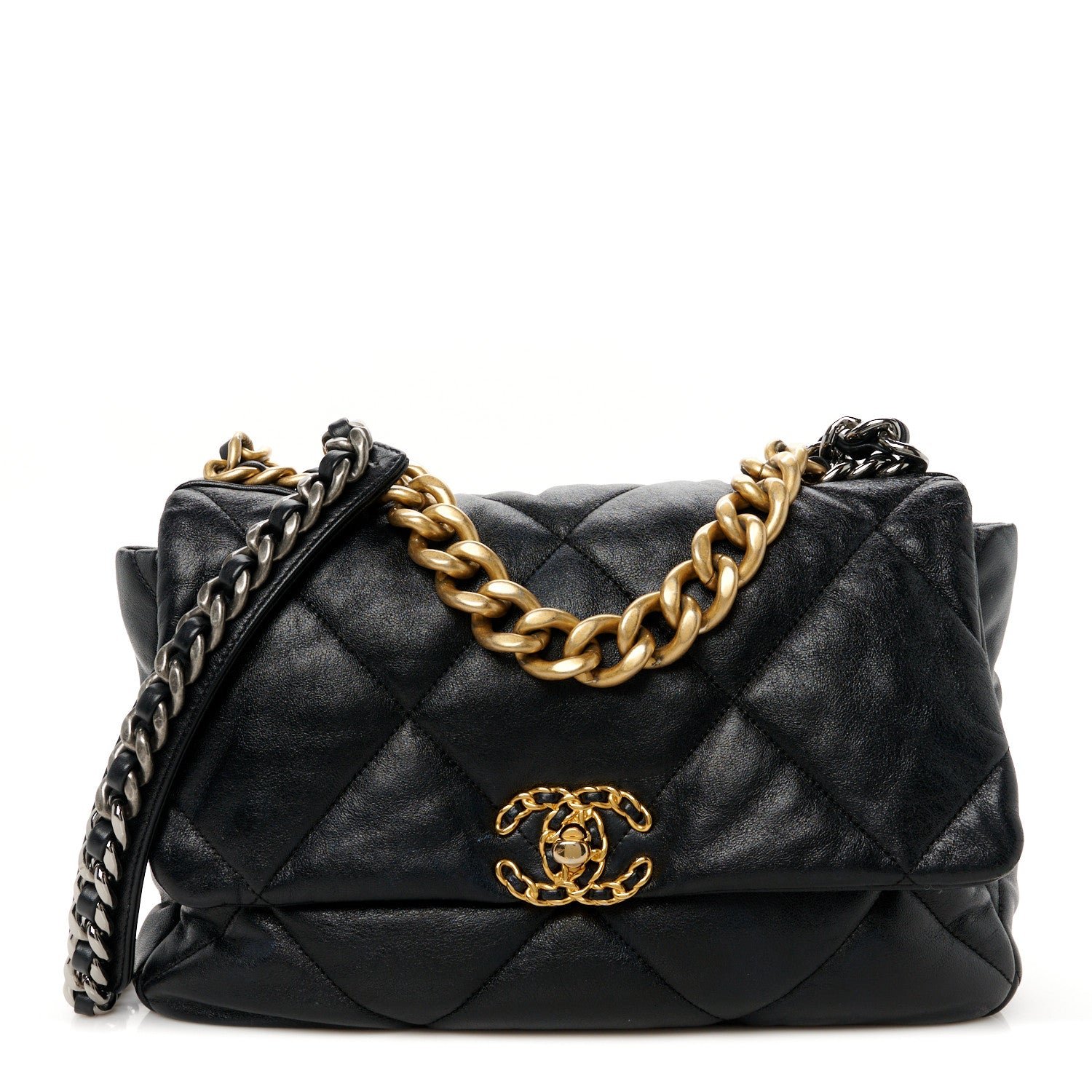 Lambskin Quilted Large Chanel 19 Flap Black