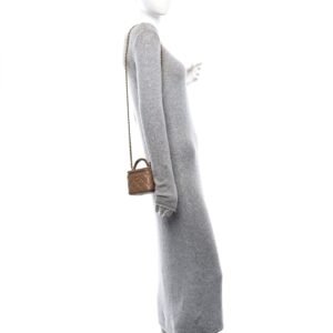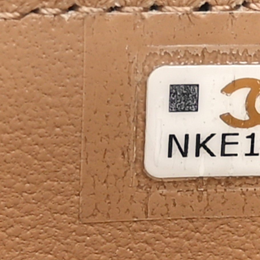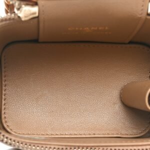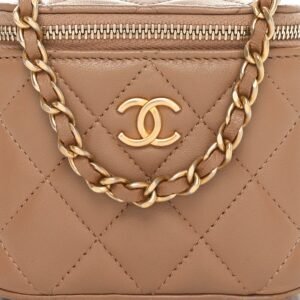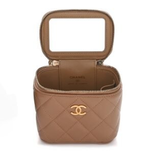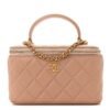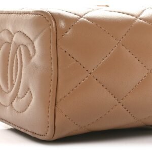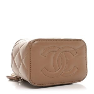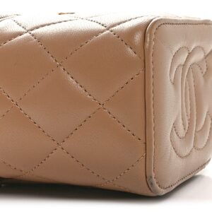 Lambskin Quilted Metal Mini Top Handle Vanity Case With Chain Beige