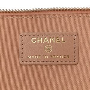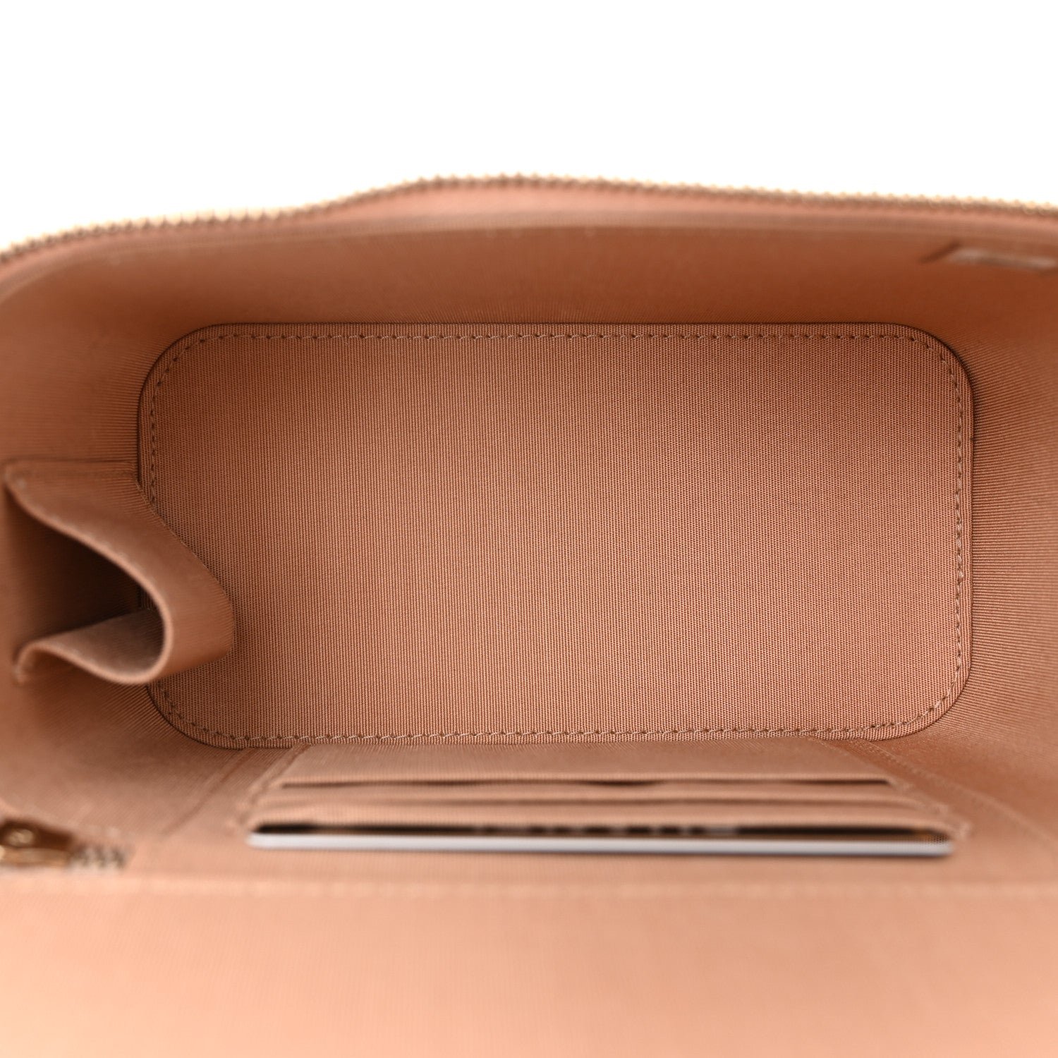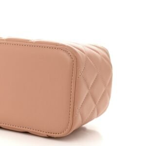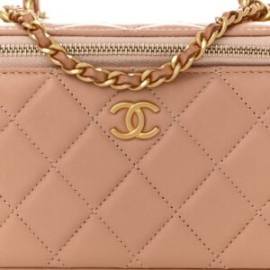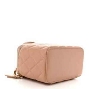 Lambskin Quilted Small Top Handle Vanity Case With Chain Beige