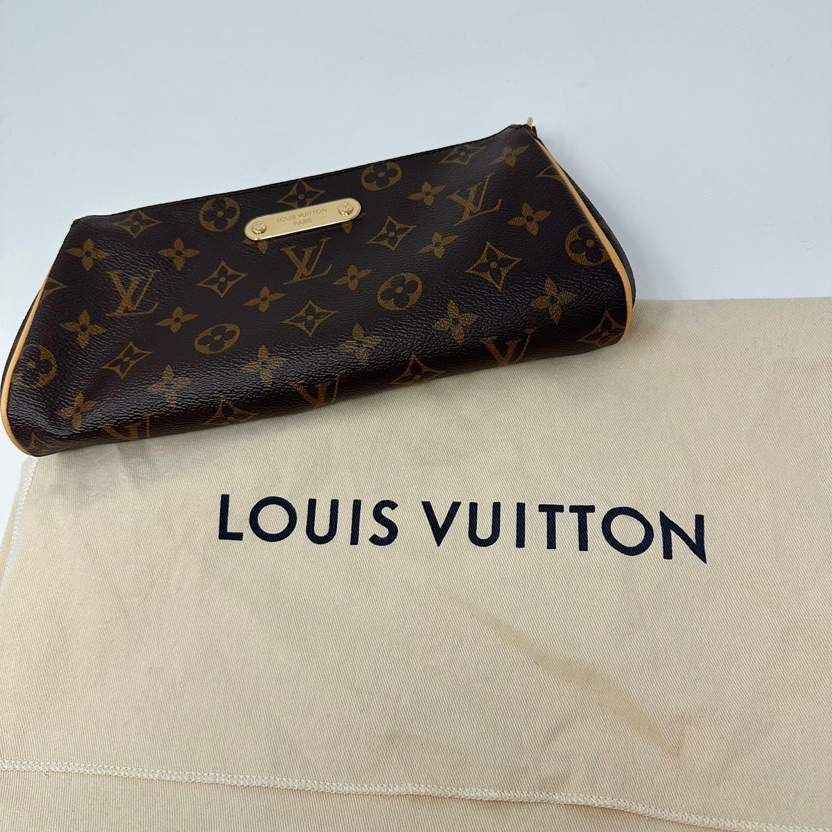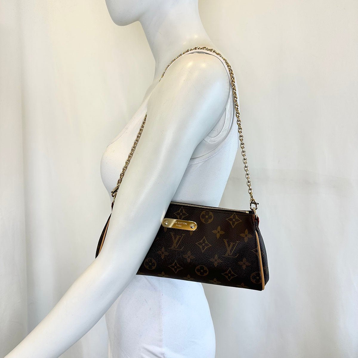 Louis Vuitton Pochette Eva Shoulder Bag with Gold tone Hardware.Leather Trim.Removable Chain Link Strap.(Microchip)