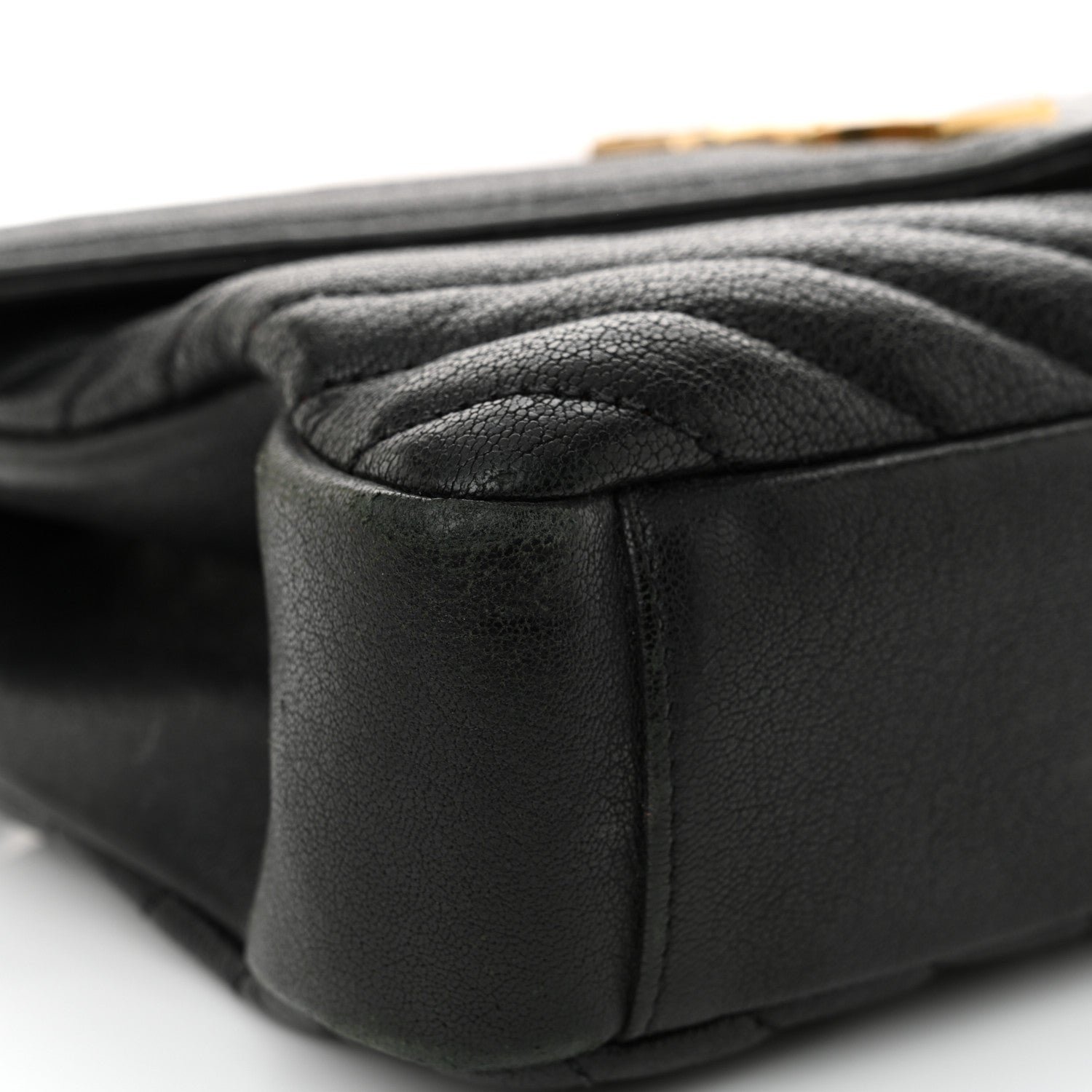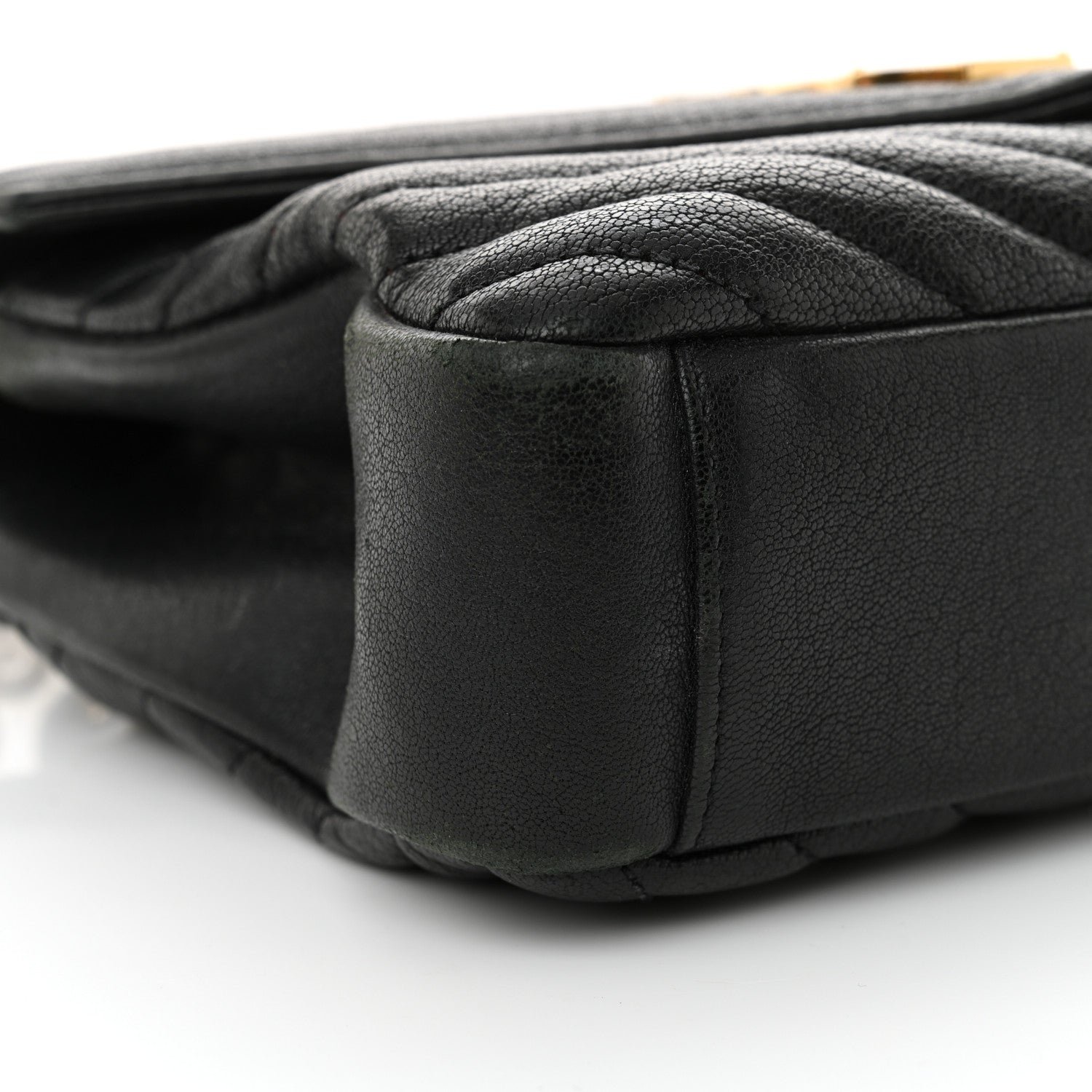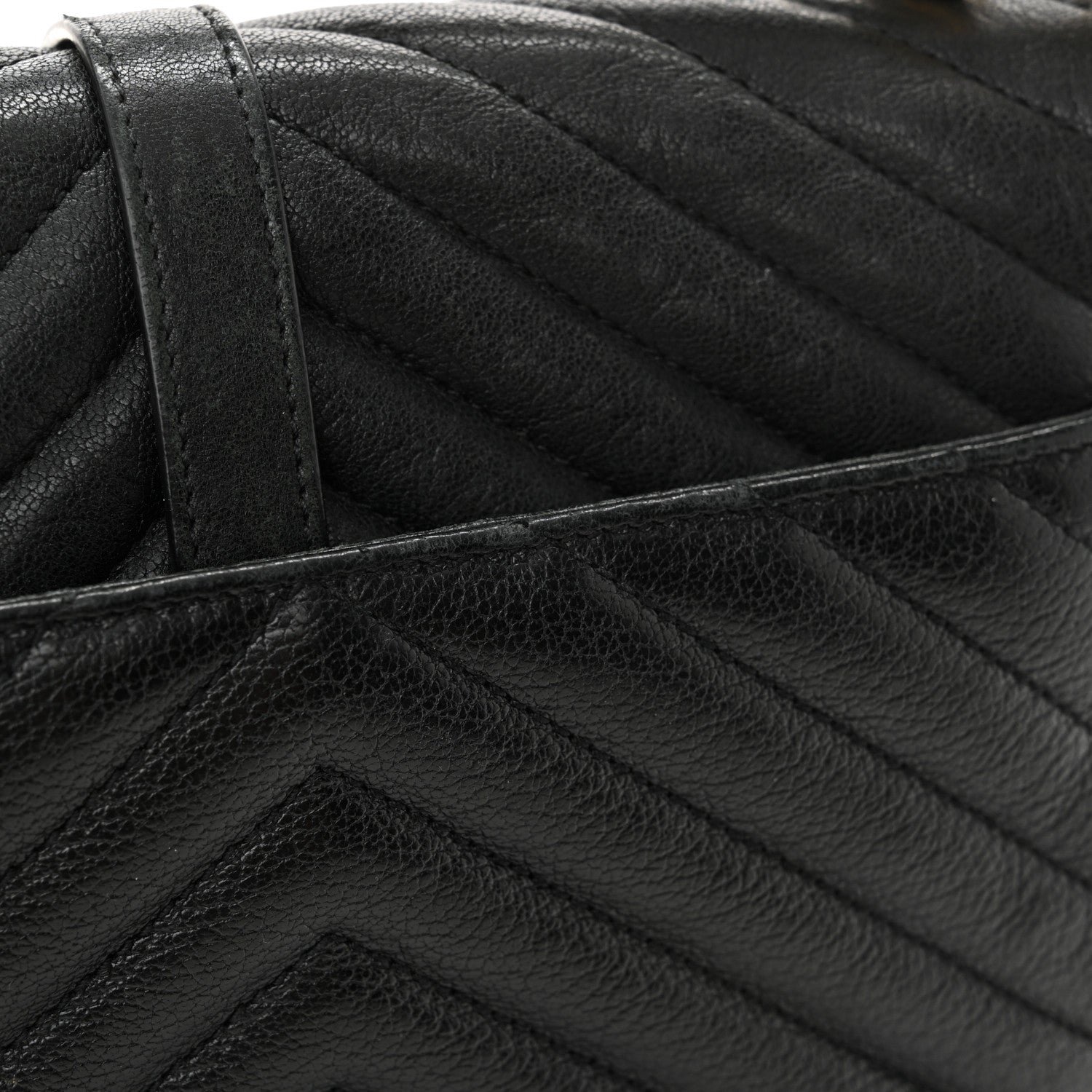 Sheepskin Matelasse Chevron Monogram Medium College Bag Black