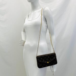 This is an authentic LOUIS VUITTON Soft Calfskin My Lockme Chain Pochette in Black.This stylish soft handbagis crafted ofsupple calfskin leather in black. The shoulder bag features a long removable chain shoulder strap. a rear pocket. and a silver LV closure on the front flap. This opens to a black microfiber interior with a zipper pocket. patch pocket. and card slots.