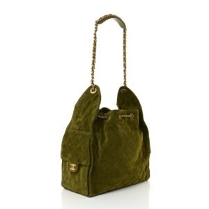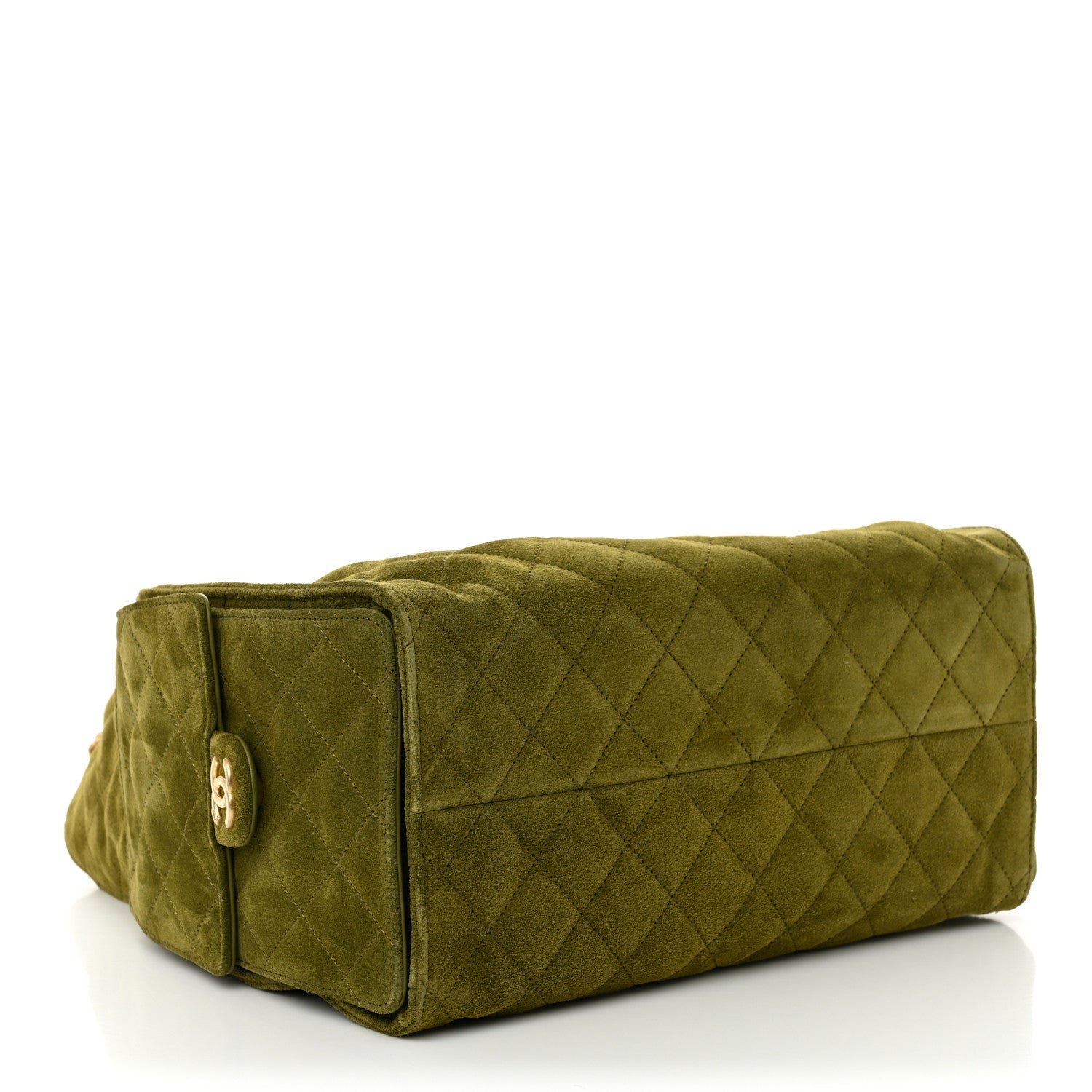 Suede Quilted Medium Chanel 25 Handbag Khaki