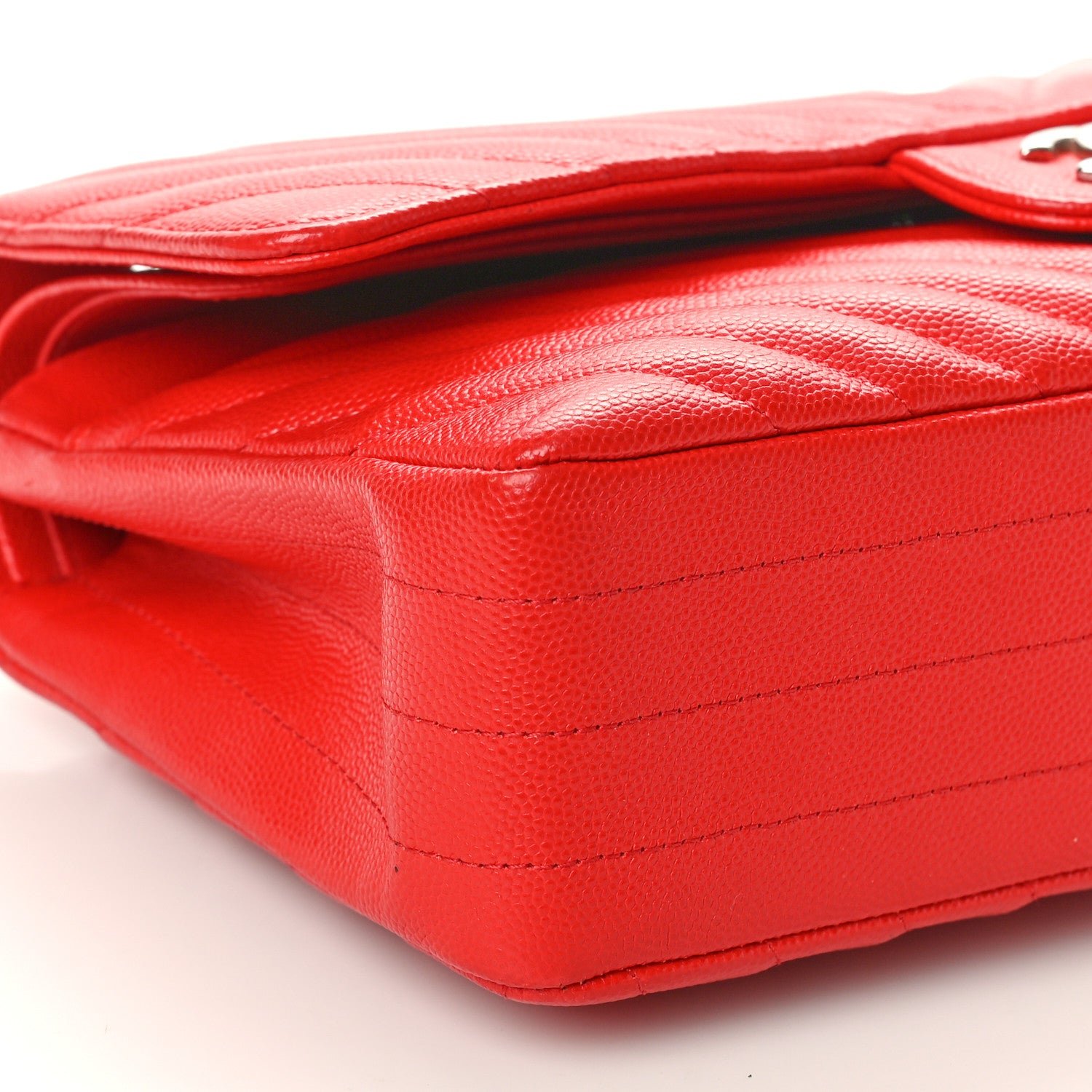 This is an authentic CHANEL Caviar Chevron Quilted Medium Double Flap in Red. This stylish shoulder bag is crafted of chevron quilted caviar leather in red. The bag features silver chain link leather threaded shoulder straps and a front flap with a silver Chanel CC turn lock. This opens to an inner flap and a red leather interior with patch pockets.