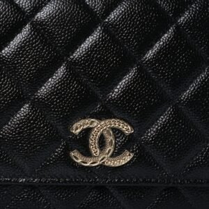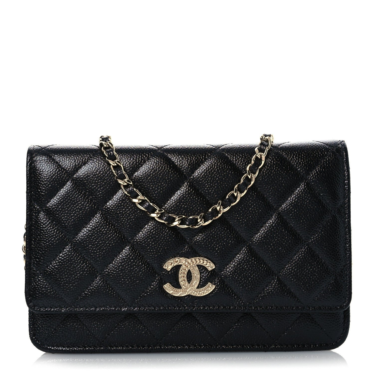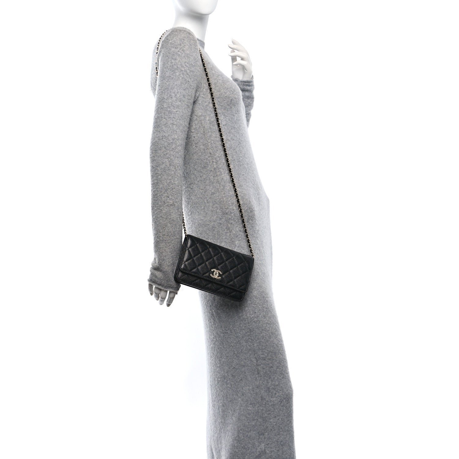 Caviar Quilted Chain CC Wallet On Chain WOC Black