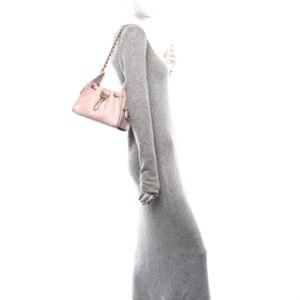 This is an authentic CHANEL Caviar Quilted Mini Chanel 25 Handbag in Light Pink. This chic shoulder bag is crafted of caviar calfskin leather in light pink. It features a gold chain leather shoulder strap. a two side pockets. and gold hardware. The top opens to a fabric interior with a patch pocket.
