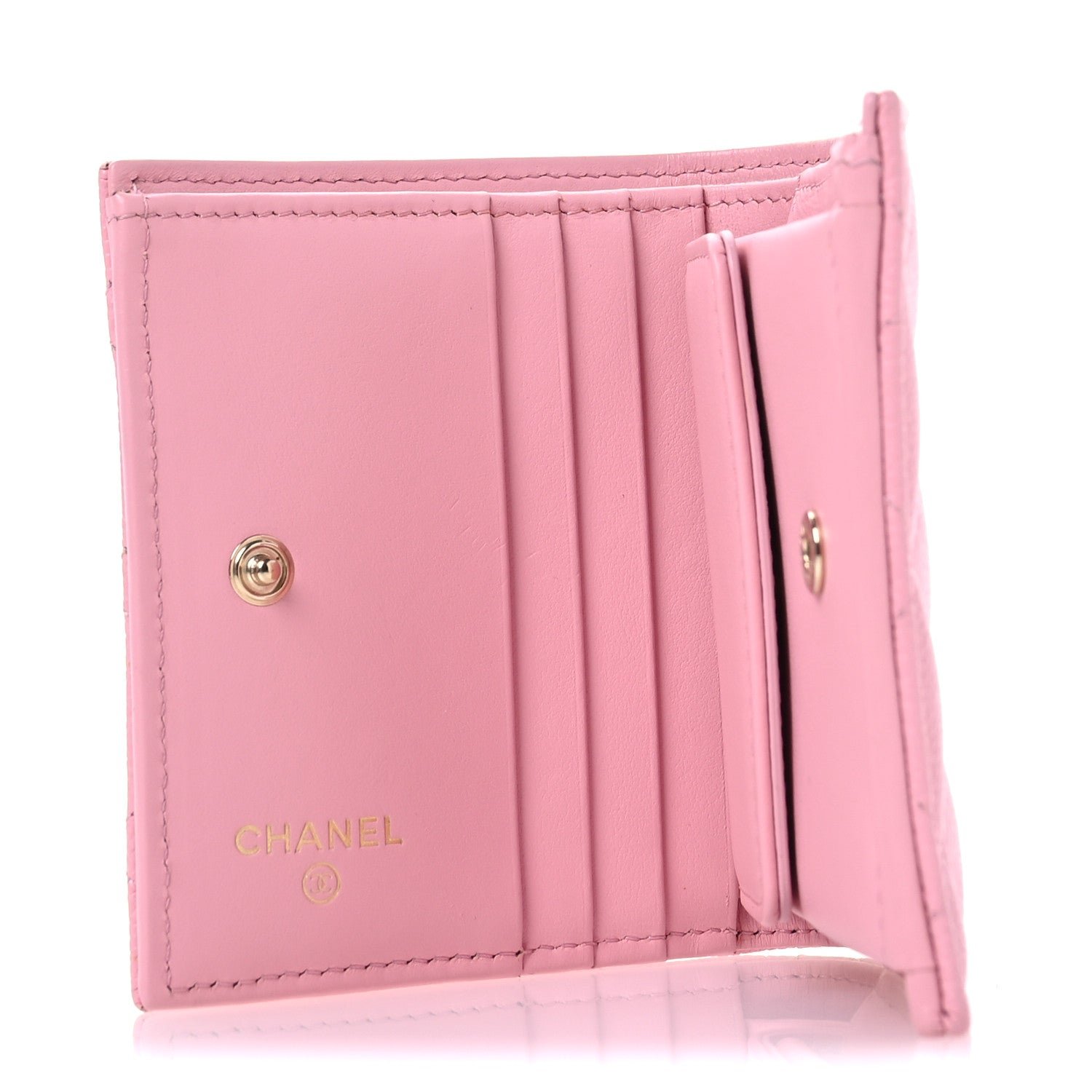 Caviar Quilted Multi Chain CC Compact Bifold Wallet Pink