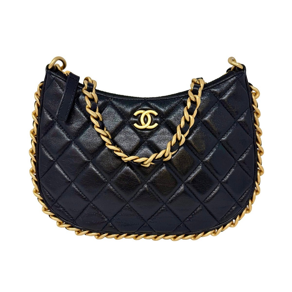 Chanel Quilted Chain Around Hobo with Zip Closure and Gold-tone Hardware (has Chip. Entrupy Authentication)