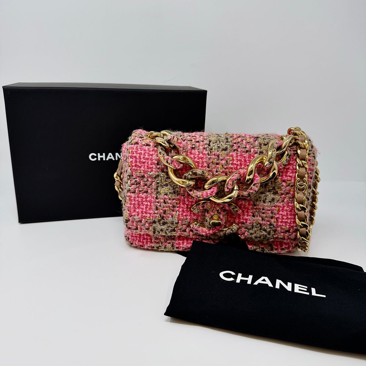 Chanel Tweed Shoulder Bag with Gold-tone Hardware (has chip. includes Entrupy Certificate. Box and Dustbag)
