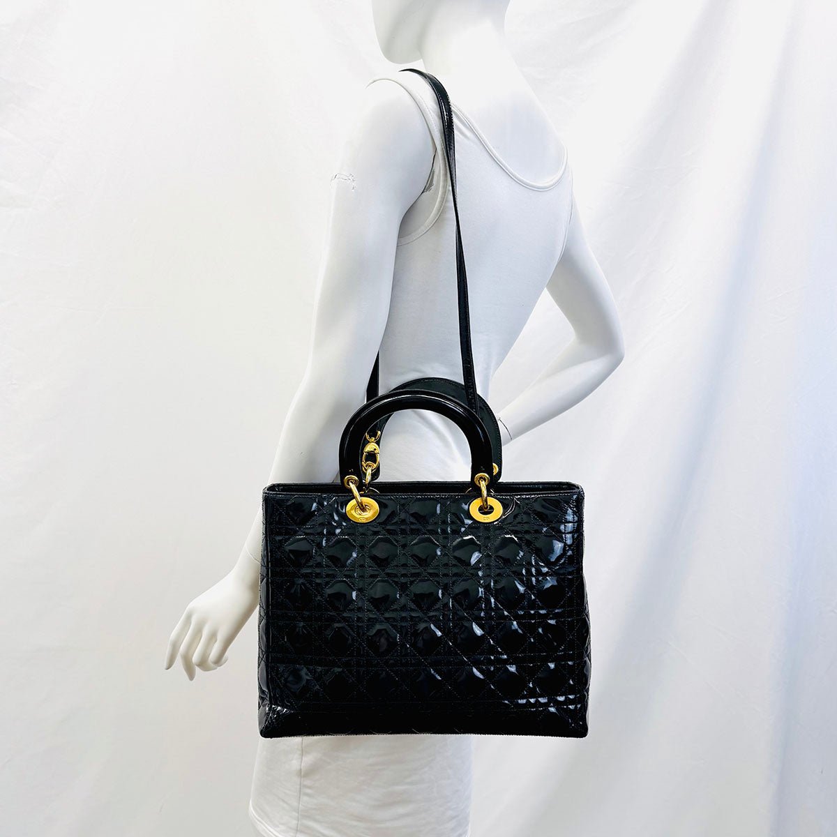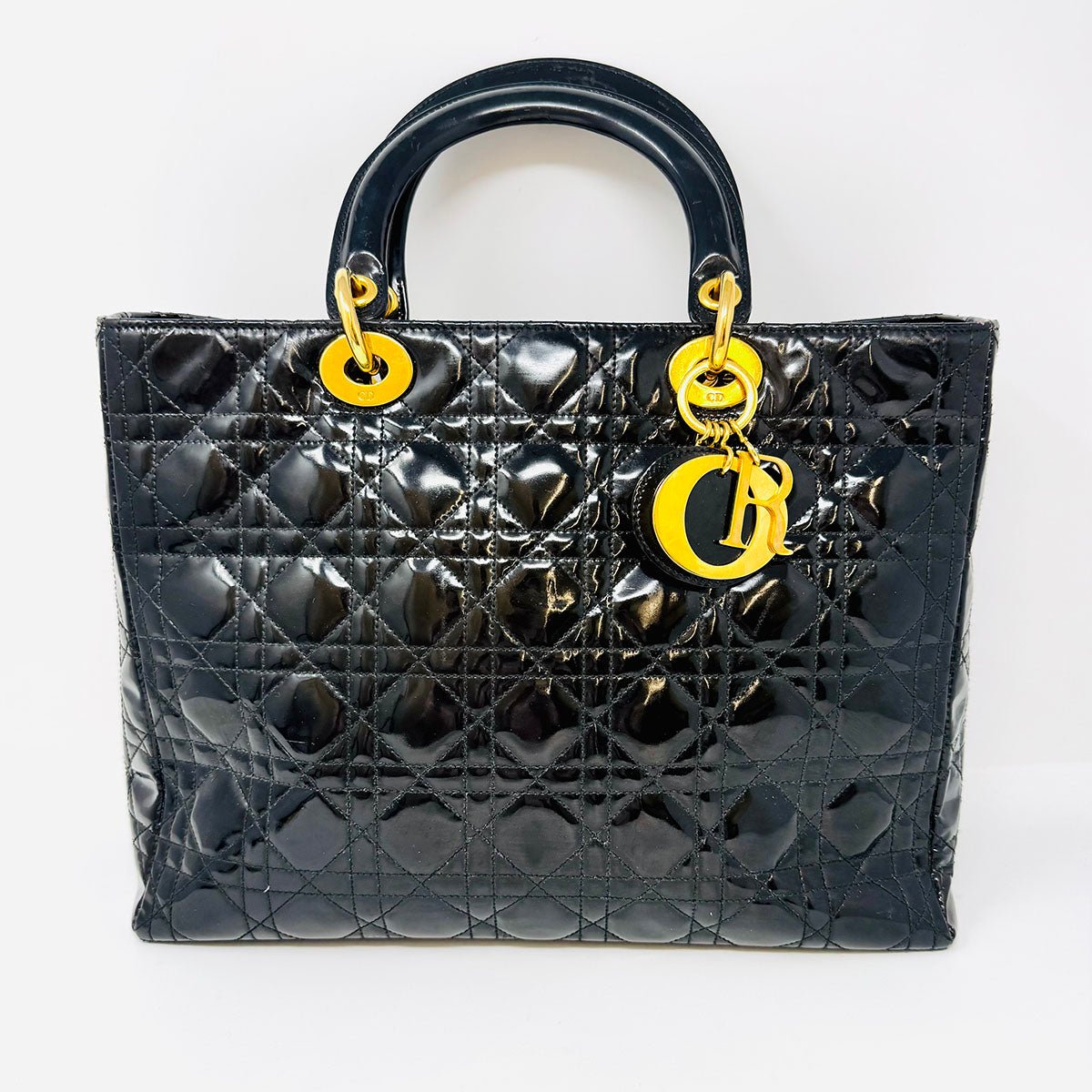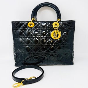 Christian Dior Lady Dior Large Cannage Handle Bag with Gold-tone Hardware.+ includes Shoulder Strap(est. Retail $6.500)