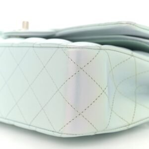 Iridescent Calfskin Quilted Medium Double Flap Light Blue