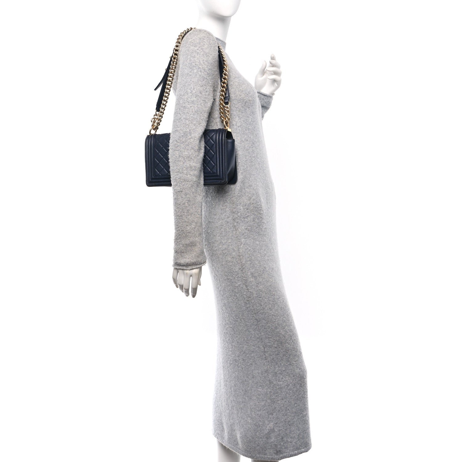 Lambskin Quilted Medium Boy Flap Dark Navy