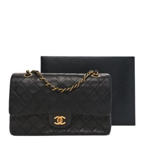 Lambskin Quilted Medium Double Flap Black