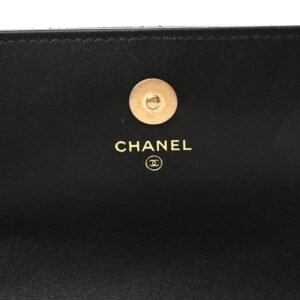 Lambskin Quilted Sweet Camellia Flap Phone Holder With Chain Black