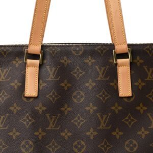 This is an authentic LOUIS VUITTON Monogram Cabas Mezzo. This stylish tote is crafted of classic Louis Vuitton monogram-coated canvas. with vachetta leather shoulder straps. a matching base. and polished brass hardware. The top zipper opens the bag to a cocoa brown fabric interior with a zipper and patch pocket.