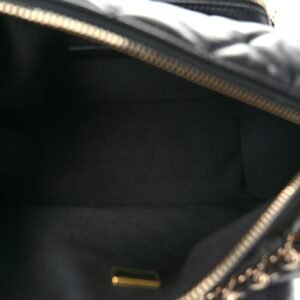 Shiny Crumpled Lambskin Quilted Medium Preppy Pocket Camera Case Black