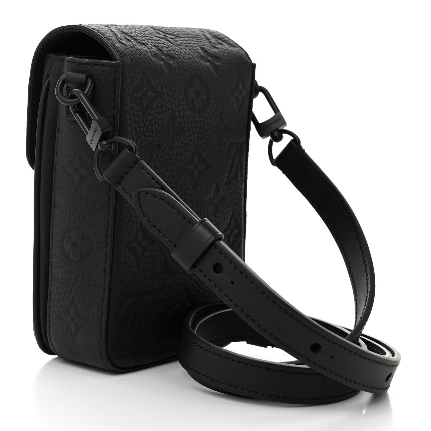 This is an authentic LOUIS VUITTON Taurillon Monogram S Lock Wearable Wallet in Black. This new S-Lock Vertical wearable is crafted of black monogram embossed Taurillon leather. It features a magnetic closure inspired by a historic trunk lock cowhide and a leather strap and opens to a fabric interior with two compartments.