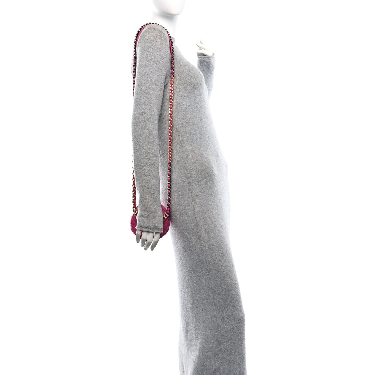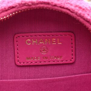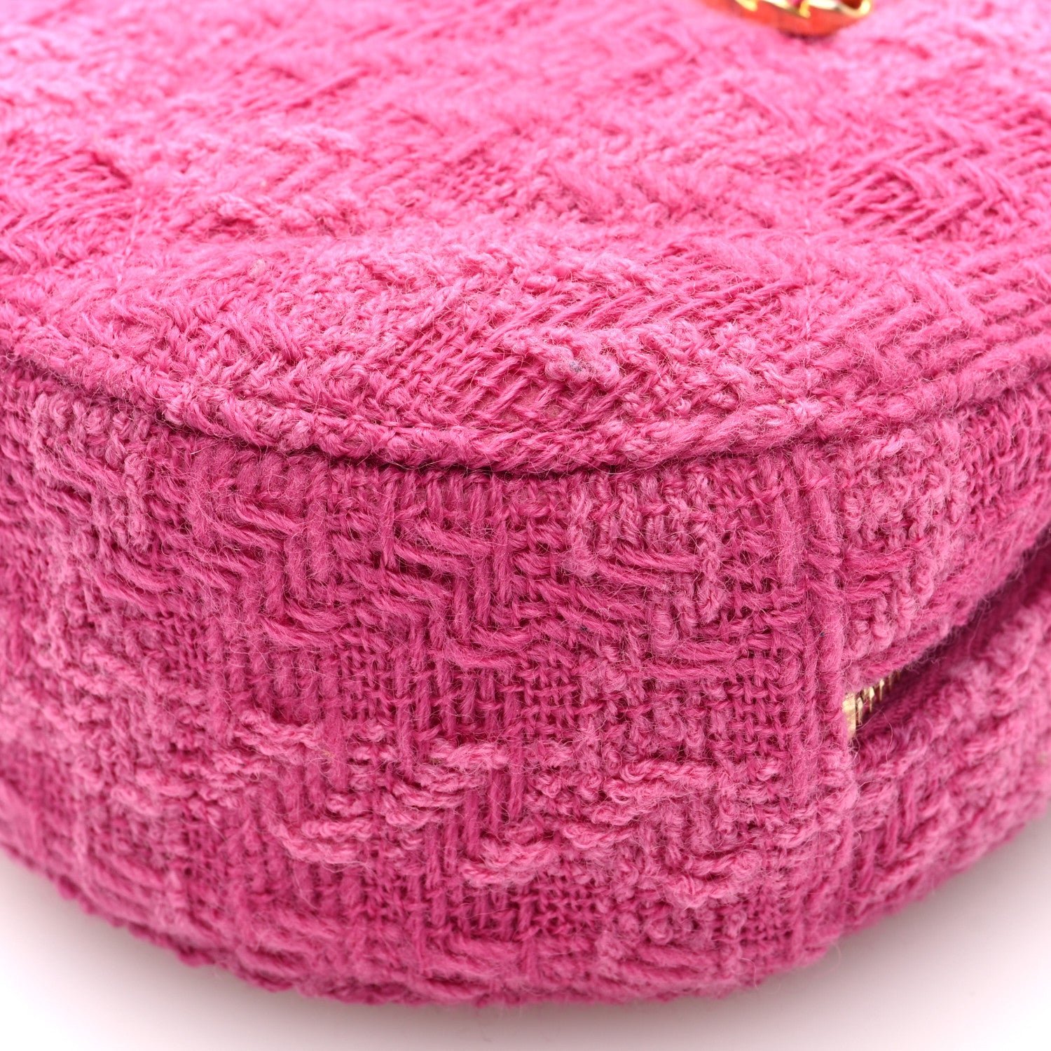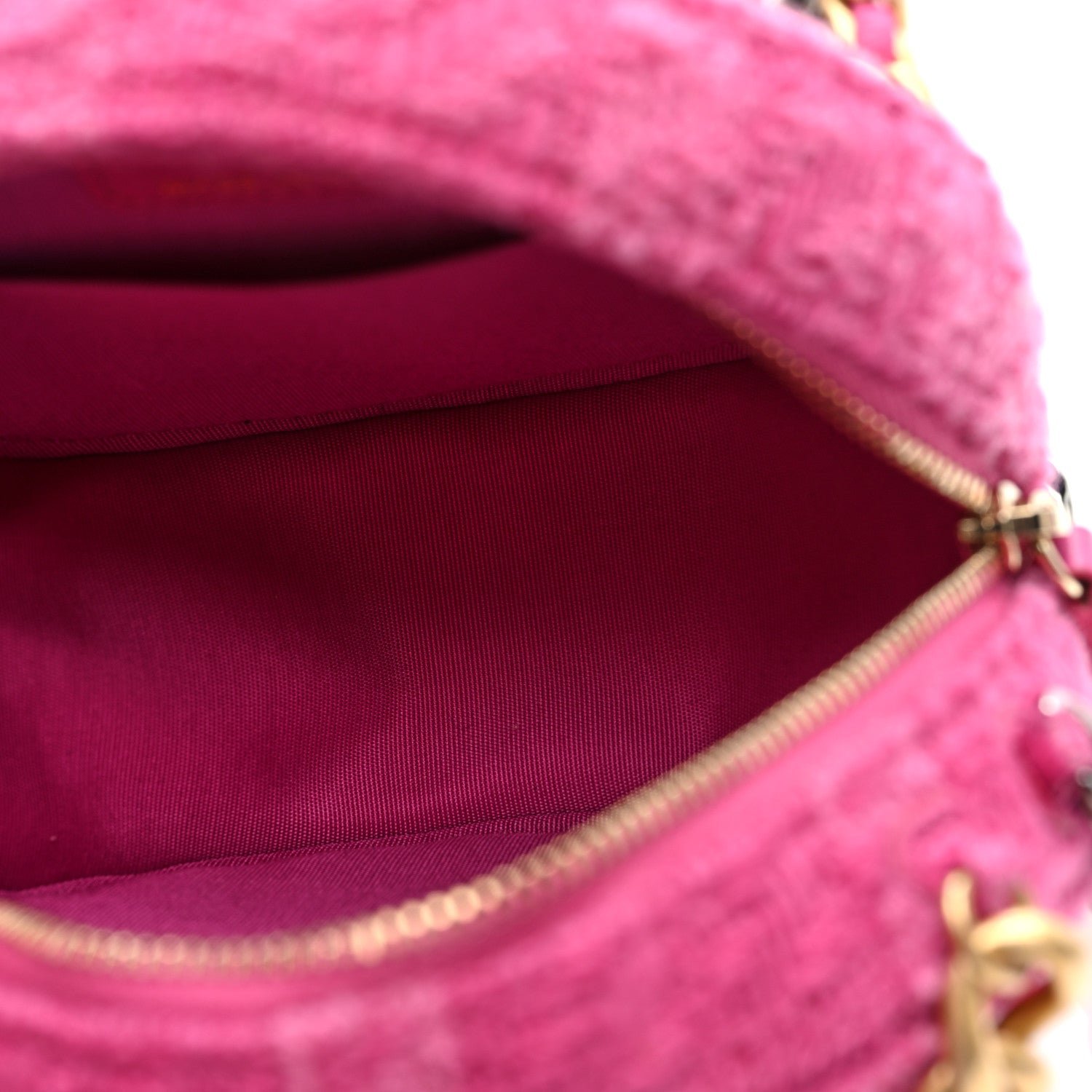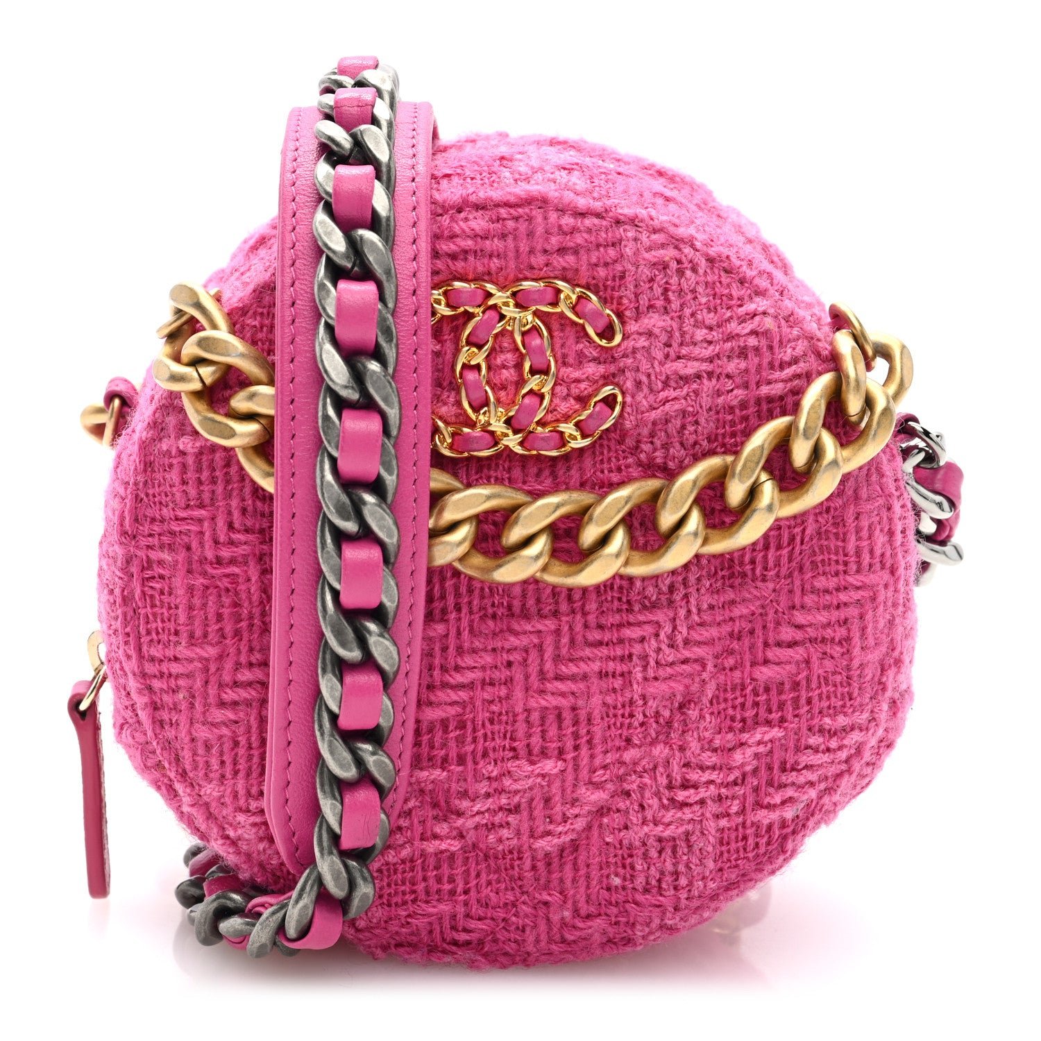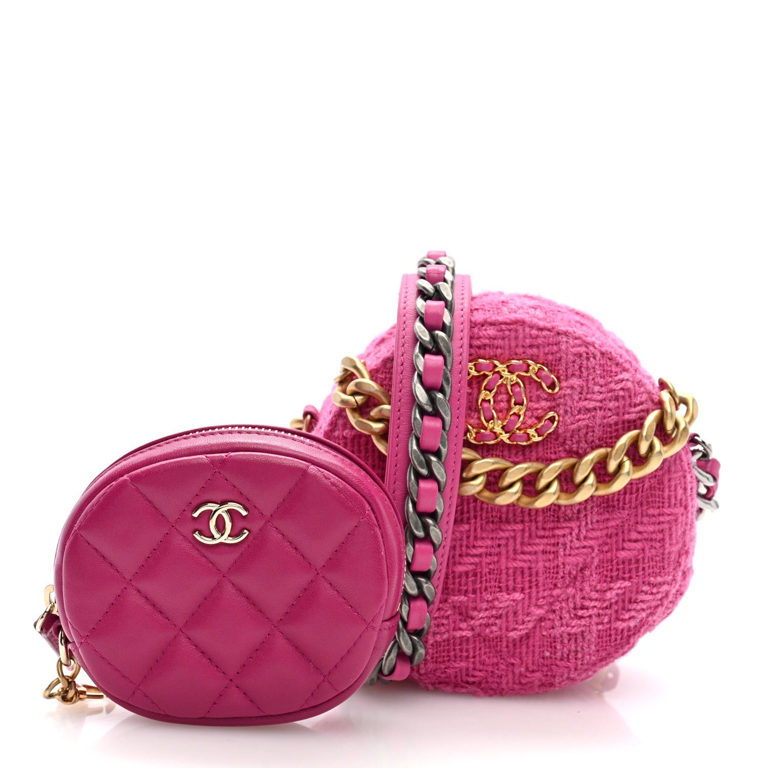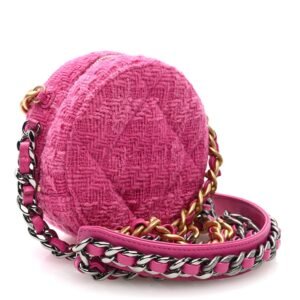 Wool Tweed Lambskin Quilted Chanel 19 Round Clutch With Chain and Coin Purse Fuchsia